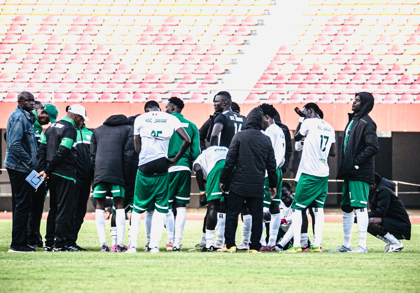 La saison est presque terminée pour le Jaraaf. Tous les objectifs fixés en début de saison se sont effondrés, comme un château de cartes : Accession en phase de poules de la ligue des champions ratée, élimination en huitième de finale de la coupe du Sénégal et distancé en championnat. Le club de Cheikh Seck n’a d’autres choix que de revoir ses ambitions à la baisse. Même s’il parlait des « moments très difficiles avec une situation qu’on va dépasser », il y’a quelques jours, pour motiver son équipe, au cours d’un Ndogou.